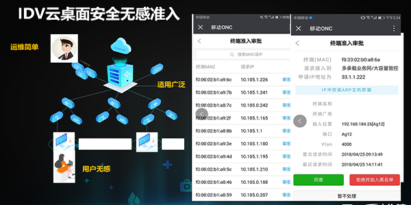 以新建院区为例,传统PC需要安装调试,然后逐台进行系统安装和测试运行,而通过尊龙时凯医疗云桌面IDV产品,全部产品可以接电上线后统一在后台进行系统下发,最大化的节约了运维人员的工作量,用手机就可以实现无感准入,统一管理。日常管理中也可以通过软件监控全局情况,并获得安全告警提示,防患于未然。